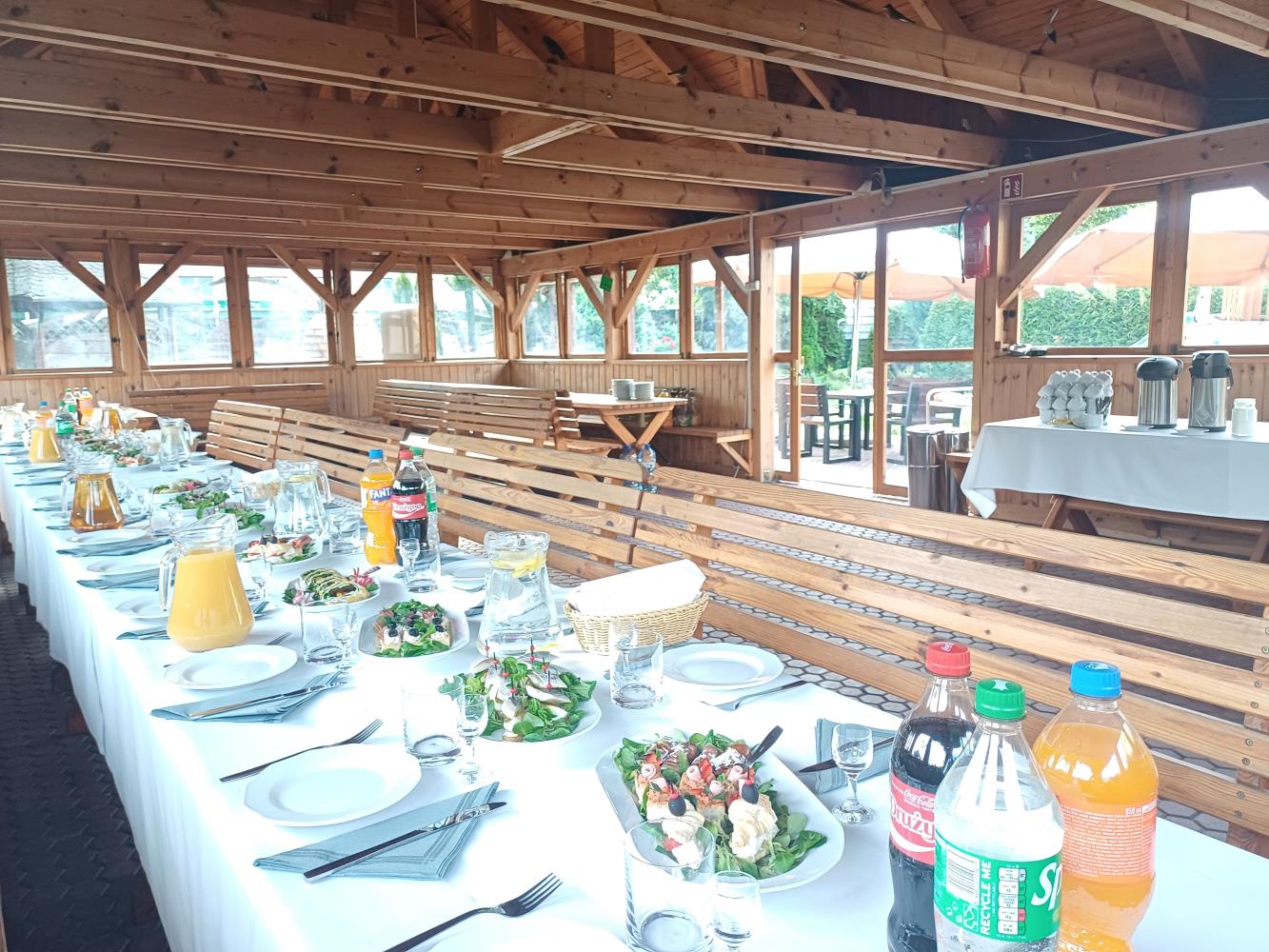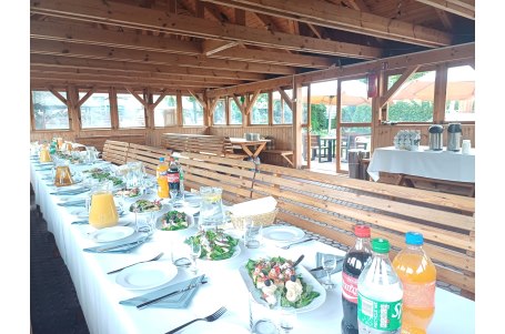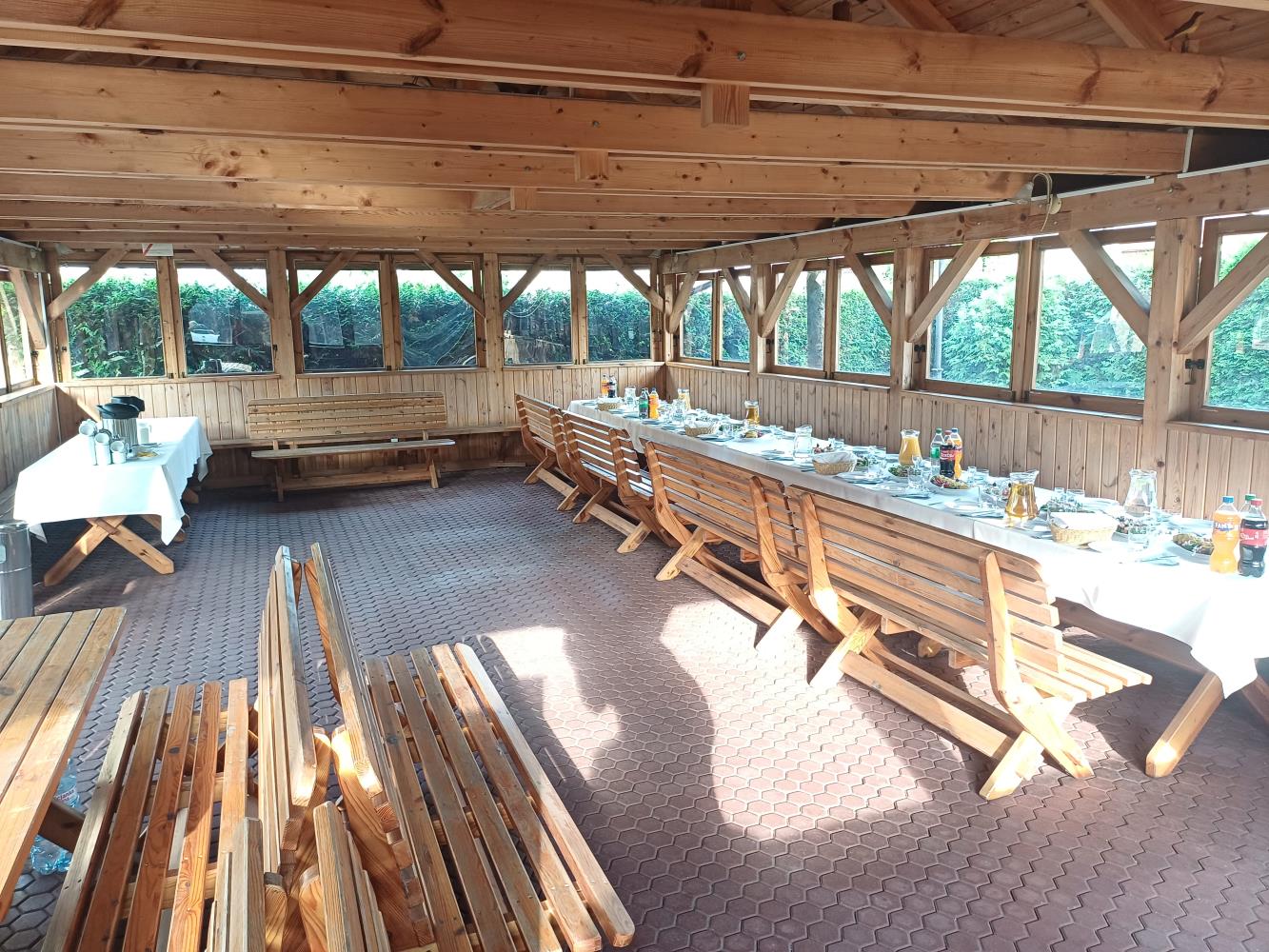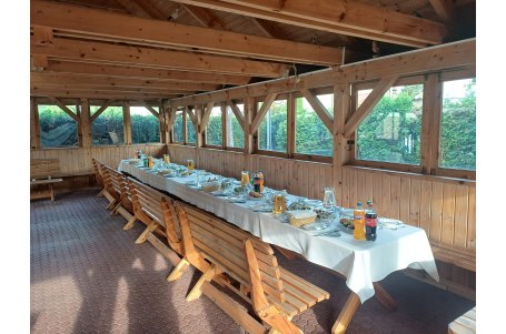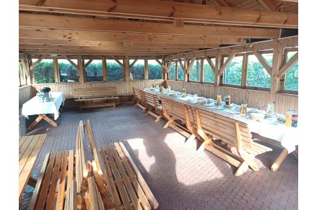 Wolnostojąca w hotelowym ogrodzie Chata Grillowa to wymarzone miejsce do organizacji wszelkich imprez na świeżym powietrzu. Chata jest całkowicie zabudowana z otwieranymi oknami , posiada drewniane stoły i ławy i może pomieścić przy stołach do 70 osób.