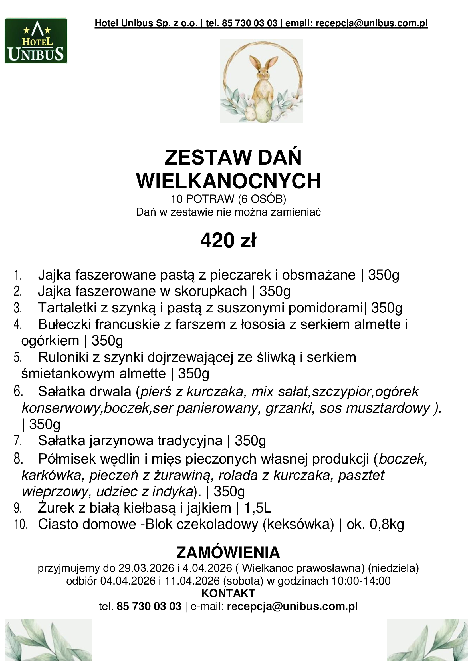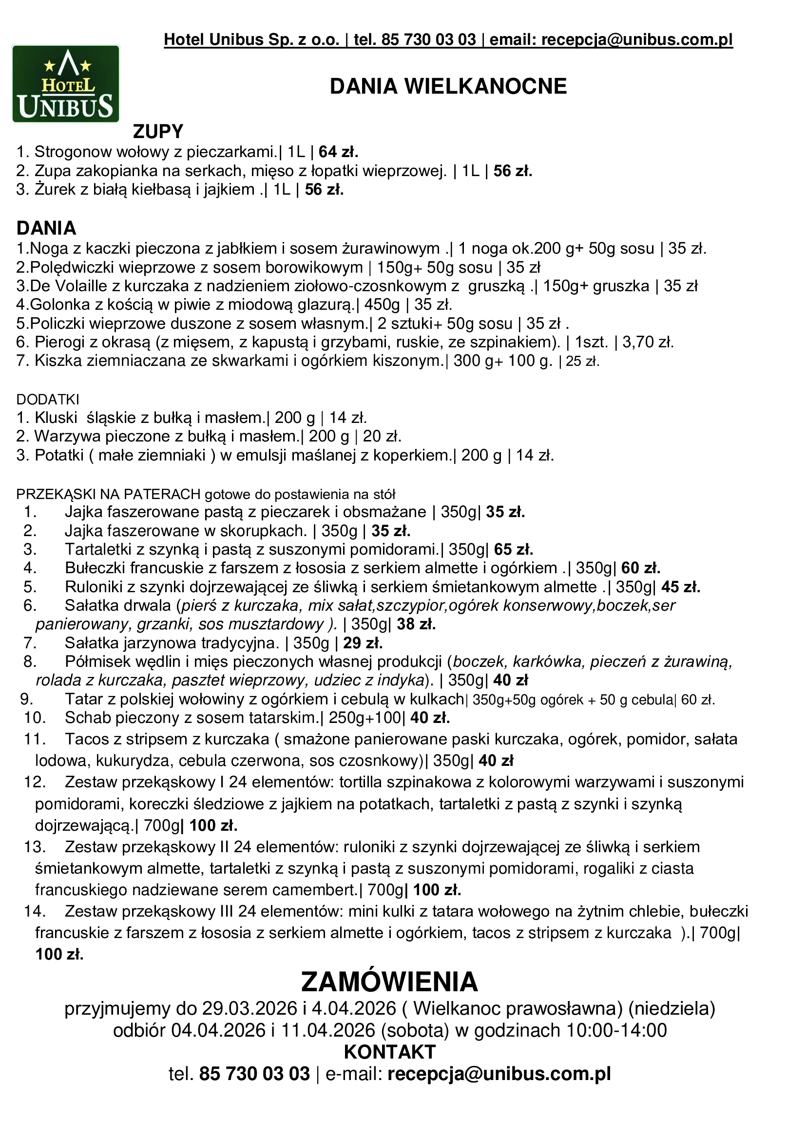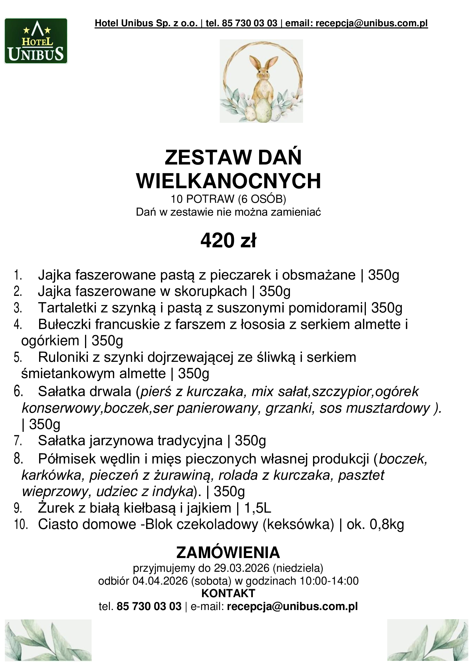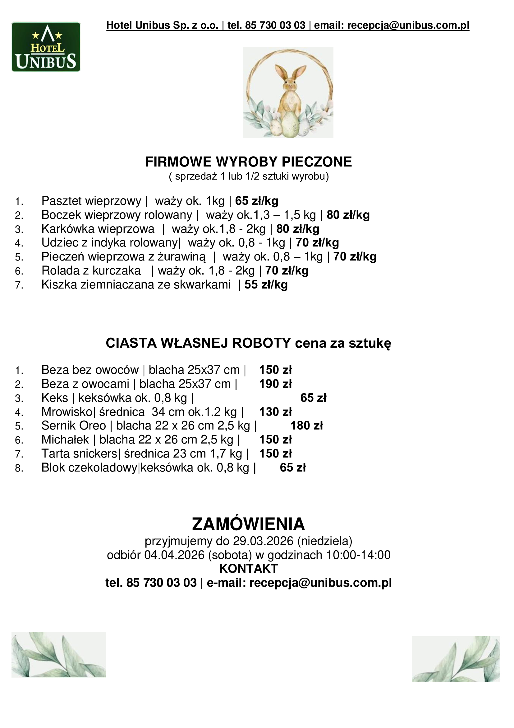TELEFON: (bezpośrednie numery do recepcji Hotelu) +48 889 555 700 +48 85 730 03 03 lub E-MAIL: (wysyłając wiadomość na adres) recepcja@unibus.com.pl